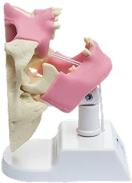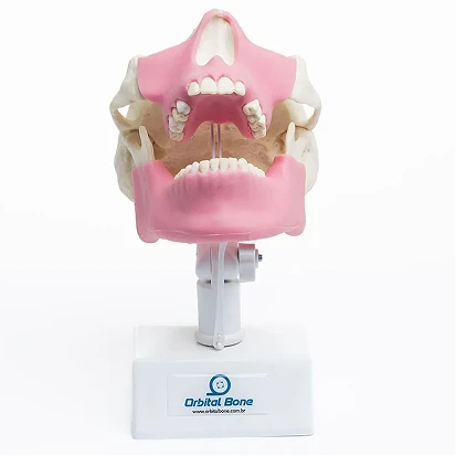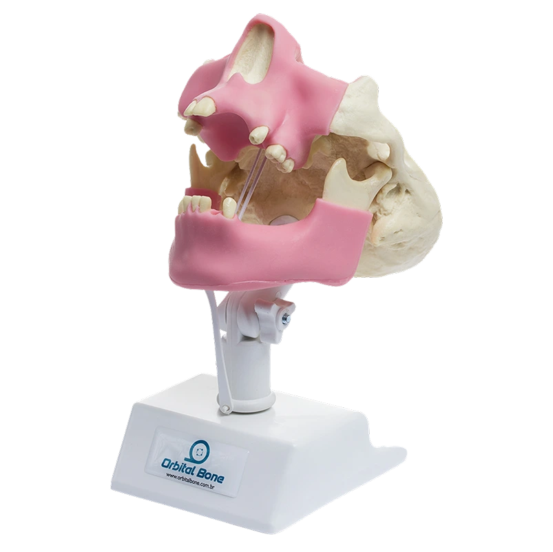 Ideal para cursos de cirurgia oral menor, este modelo permite aos alunos praticar a extração de dentes.